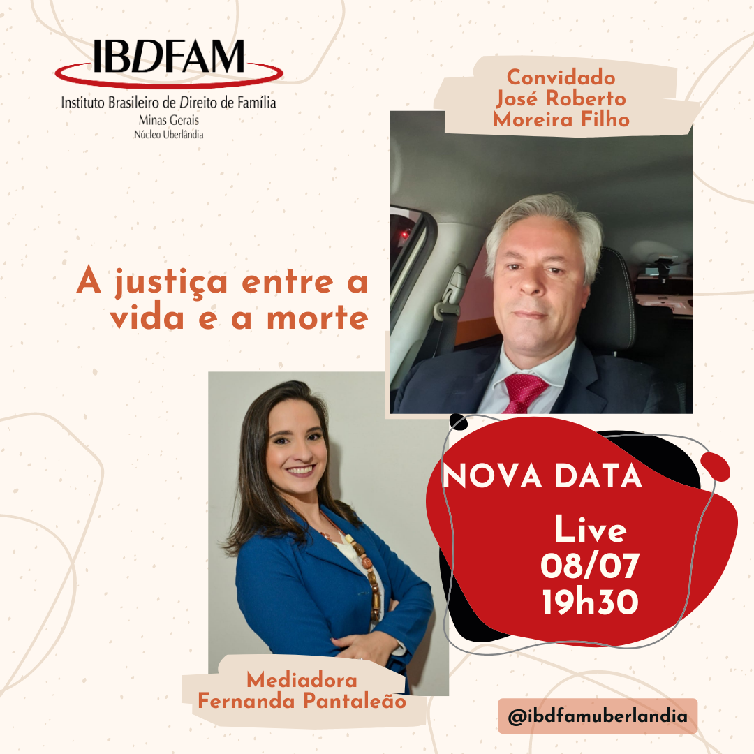 Transmissão de vídeo às 19h30, no perfil do núcleo Uberlândia do IBDFAM no Instagram (@ibdfamuberlandia).