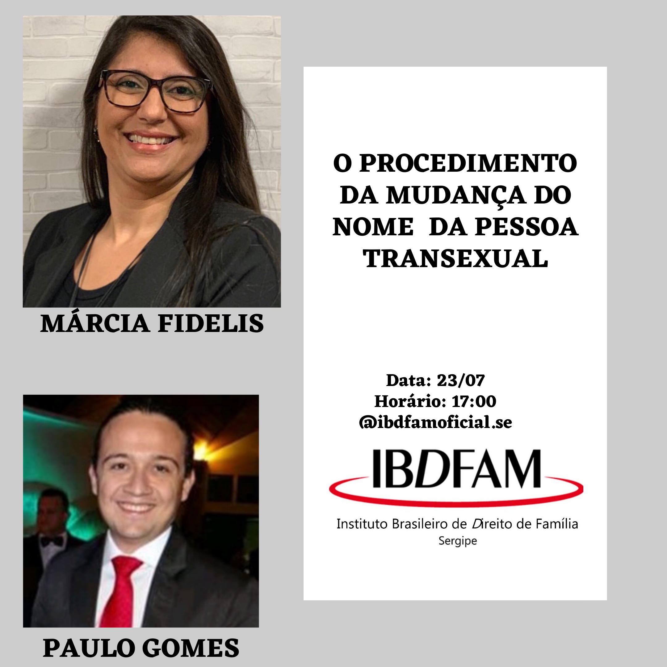 Transmissão de vídeo às 17h, no Instagram (@ibdfam.se), reúne Márcia Fidelis e Paulo Gomes.