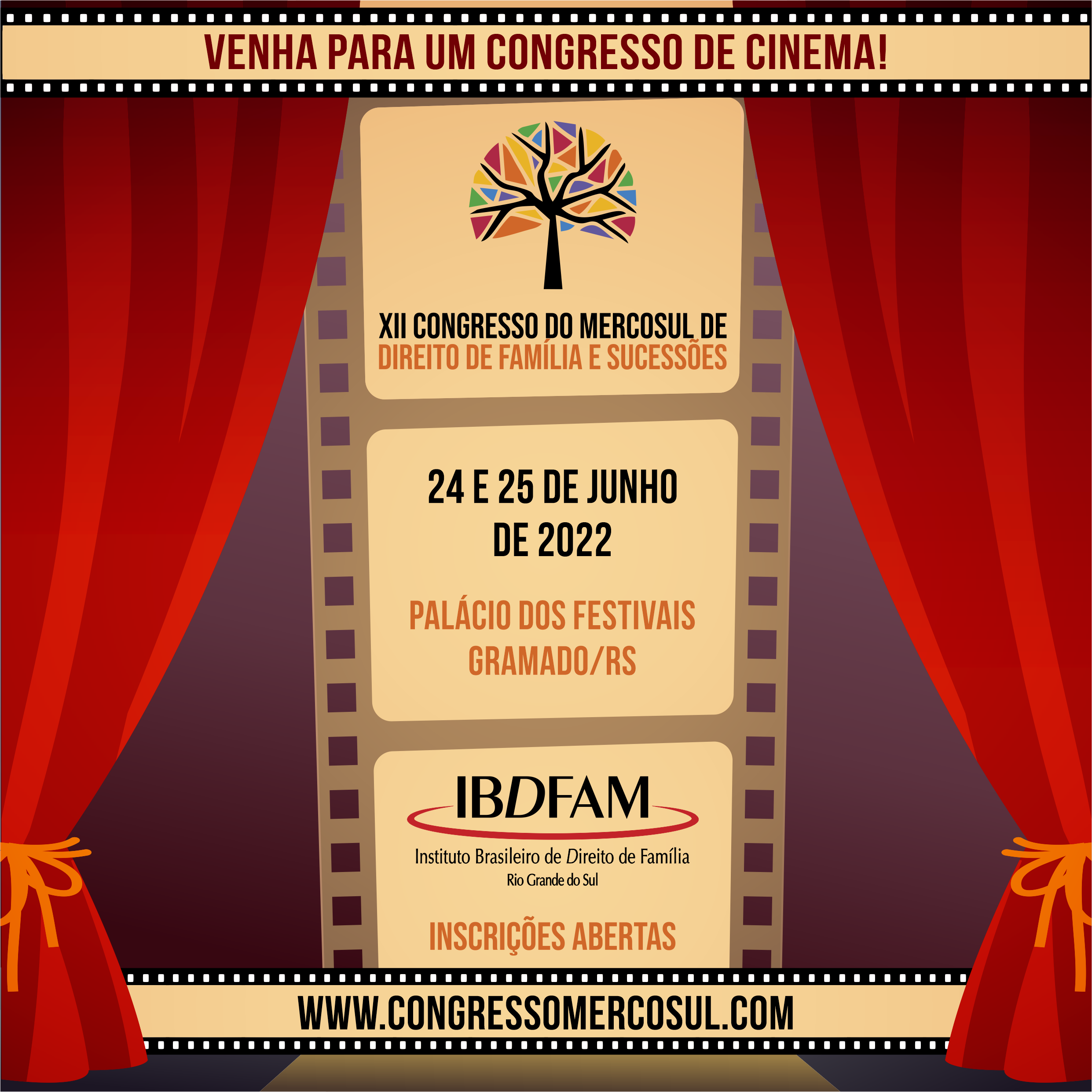 O XII Congresso do Mercosul de Direito de Família e Sucessões será realizado no Palácio dos Festivais, que é palco do Festival de Cinema de Gramado. Inscrições esgotadas.