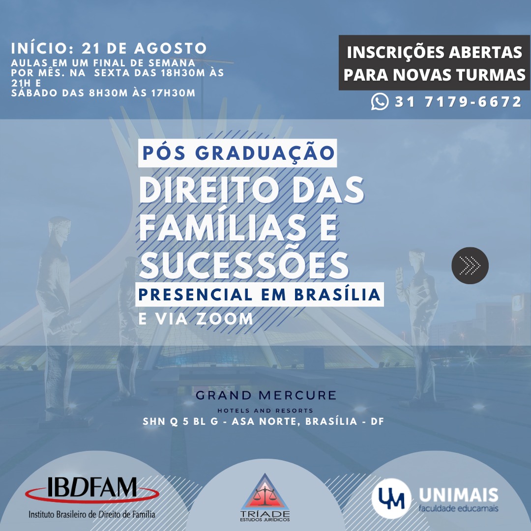 IBDFAM lança nova turma da pós em Brasília. Início das aulas em 21 de agosto.