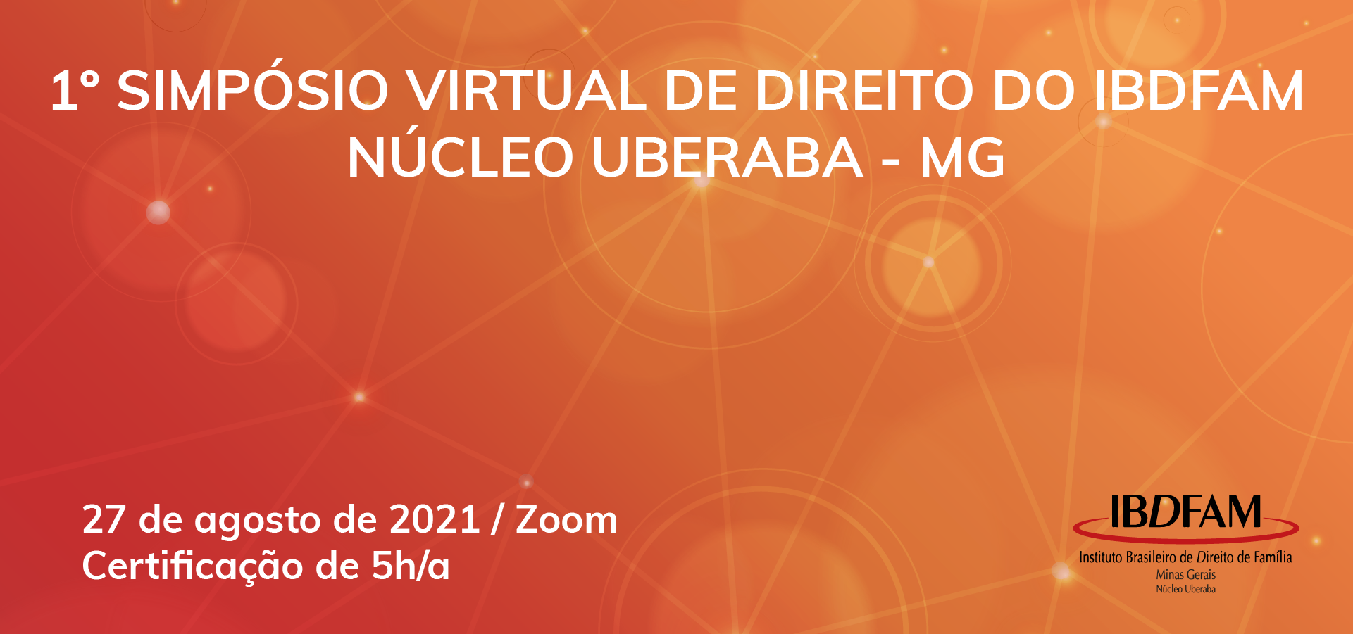 O 1º Simpósio Virtual de Direito do IBDFAM Núcleo Uberaba-MG será realizado no dia 27 de agosto, das 09h às 17h, por meio da plataforma Zoom. Inscrições abertas. Associados ao IBDFAM têm desconto. Haverá certificado de participação.
