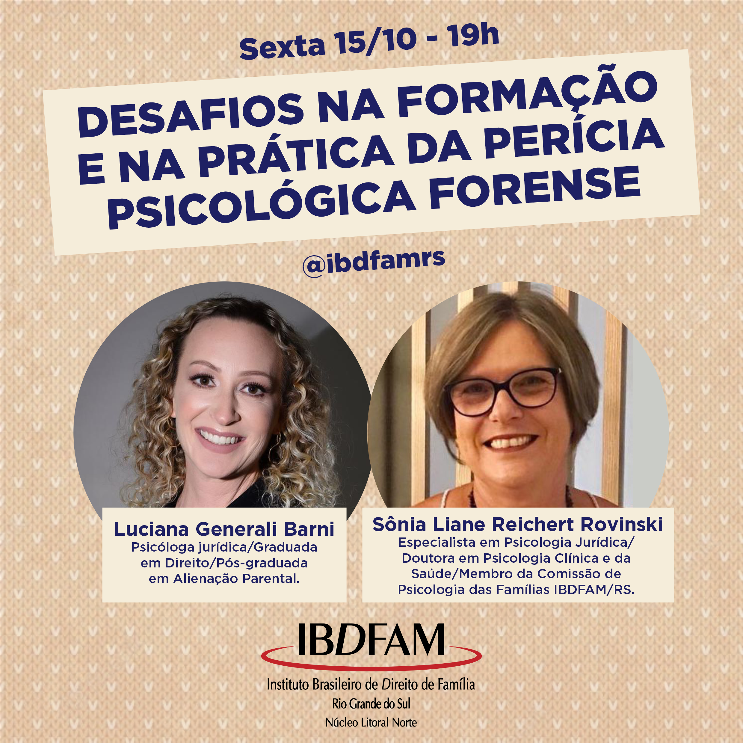 Live transmitida pelo perfil do @ibdfamrs no Instagram, às 19h. Com Sônia Liane Reichert Rovinski, membro da Comissão de Psicologia das Famílias da seção Rio Grande do Sul do IBDFAM e a psicóloga jurídica Luciana Generali.
