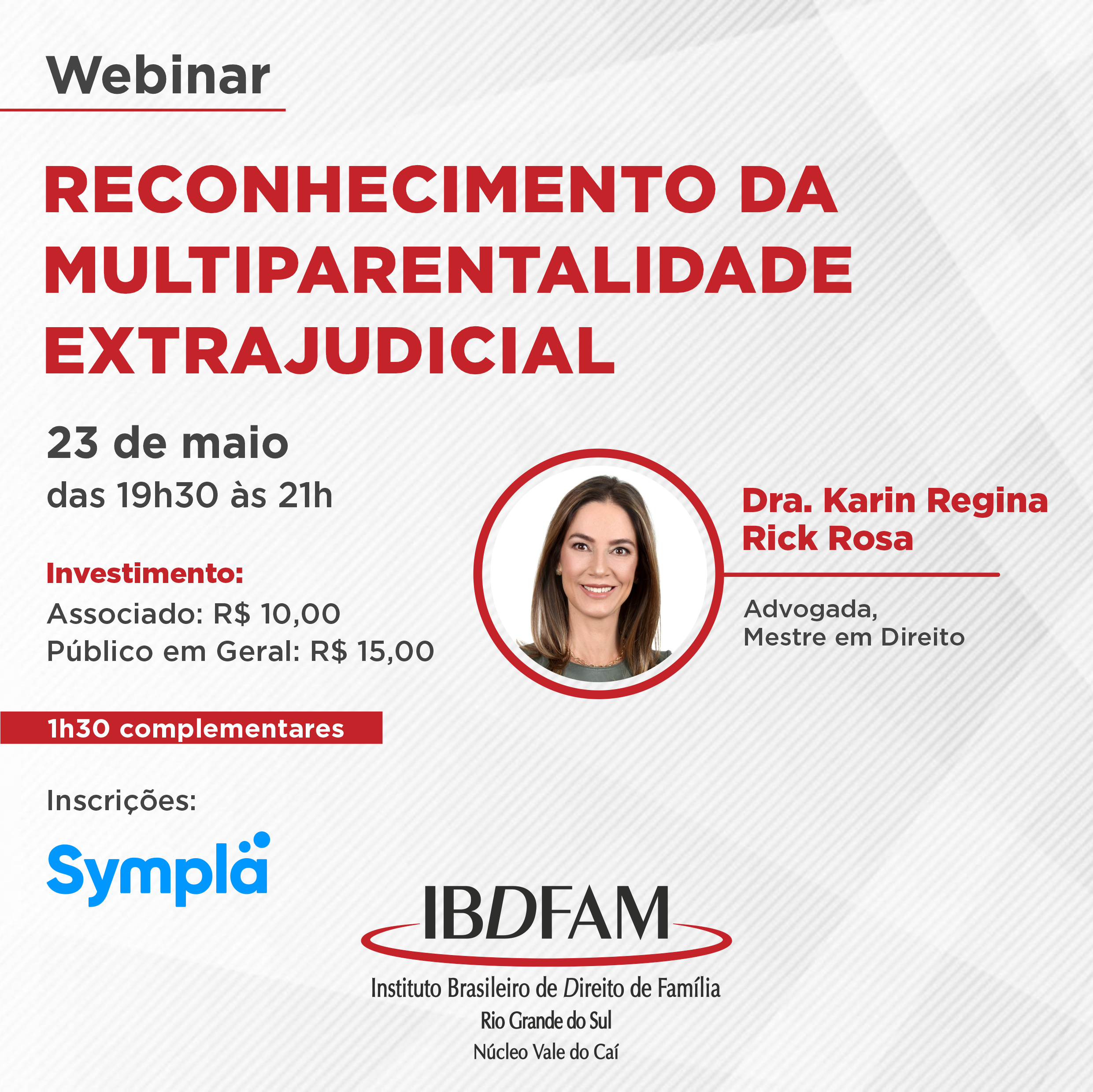 Inscrições: https://www.sympla.com.br/evento-online/webinar-reconhecimento-da-multiparentalidade-extrajudicial/1531038