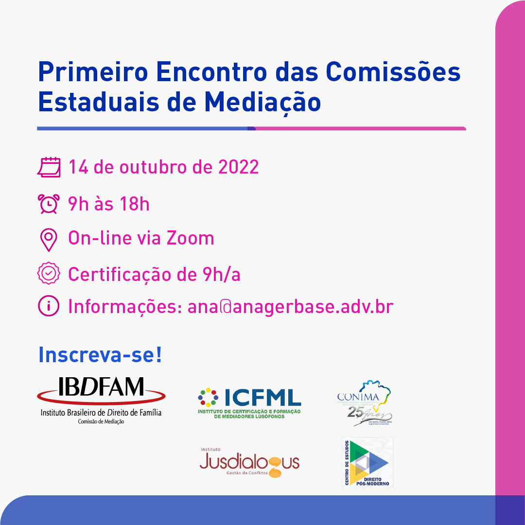 Inscrições: https://ibdfam.org.br/zoom/mediacao