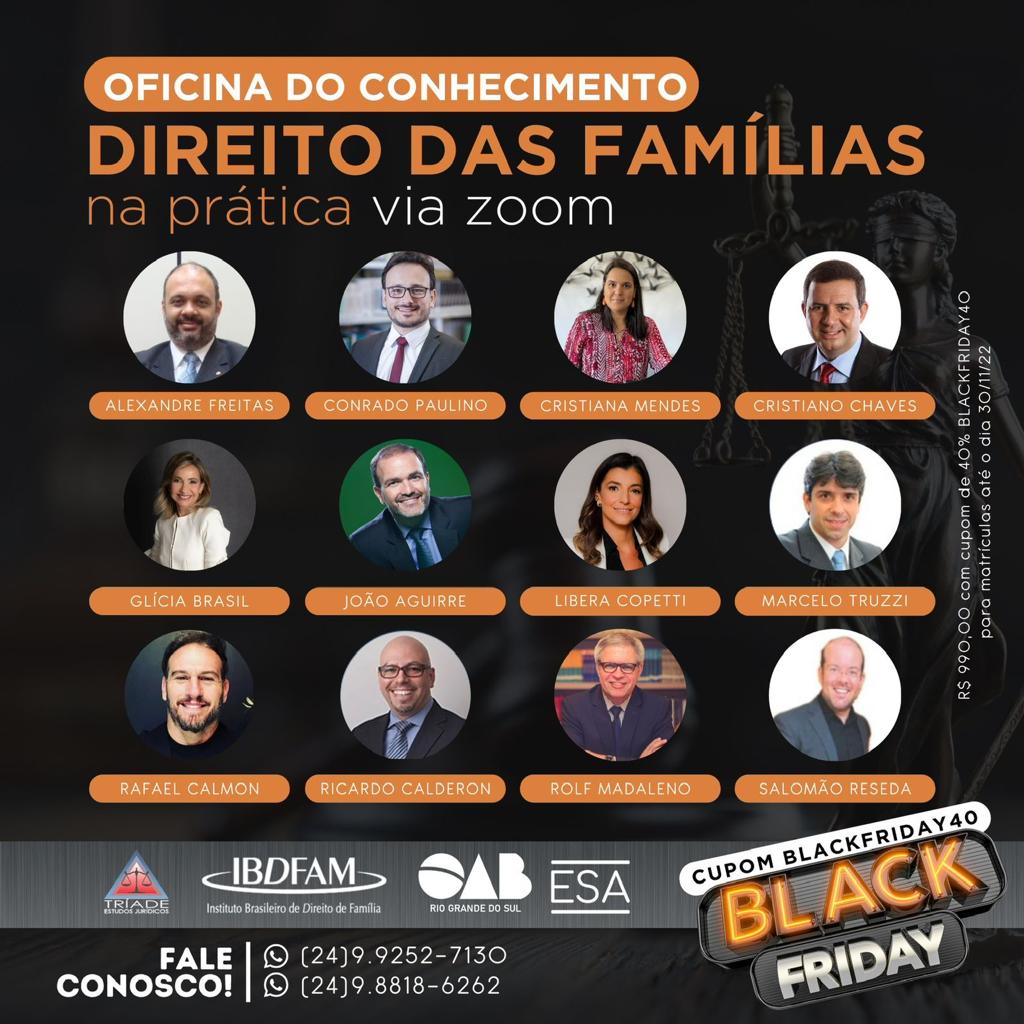 Inscrições: https://www.cursotriade.com.br/direito-de-familia-na-pratica-zoom/1748