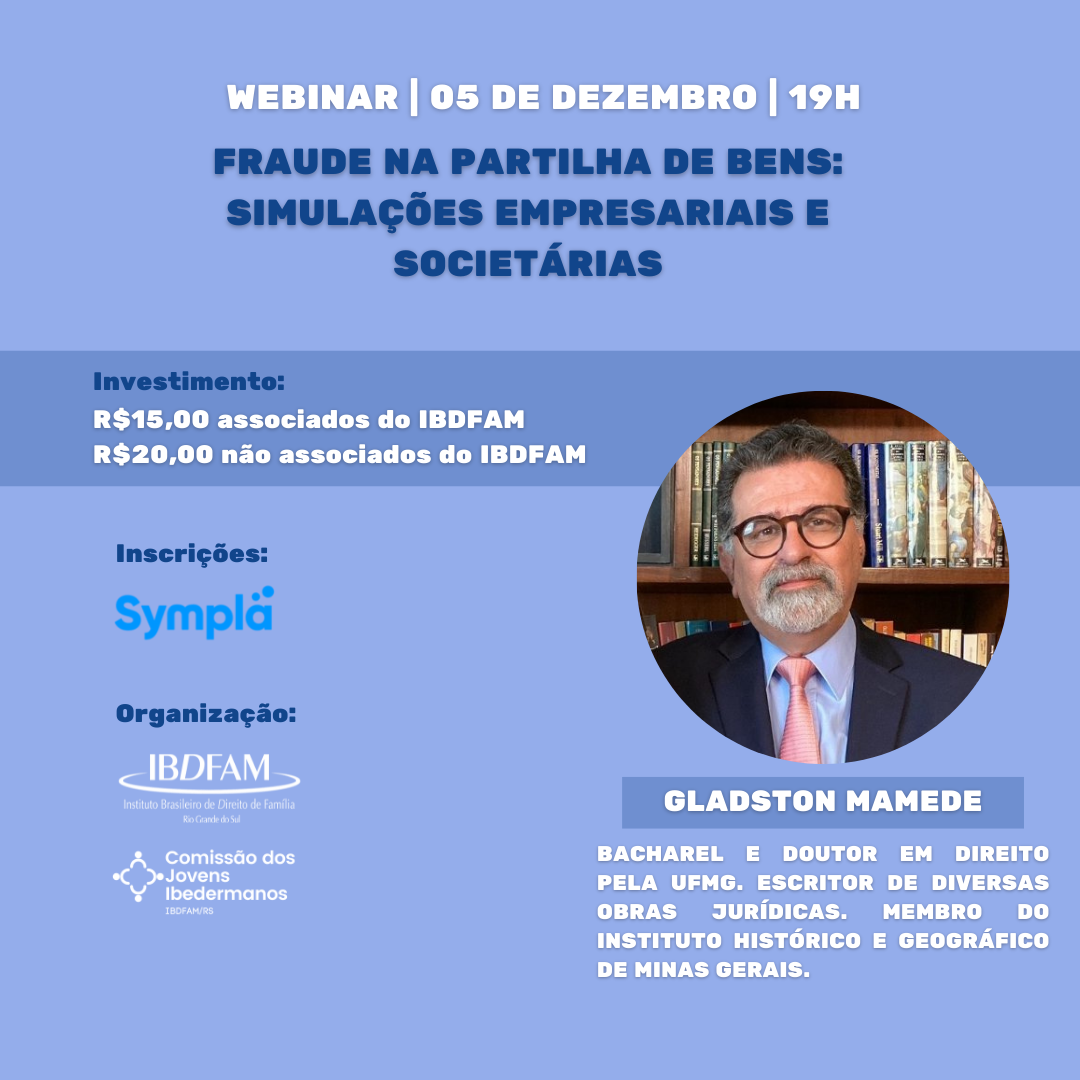 O evento acontece às 19h. Com Gladston Mamede, doutor em Direito pela UFMG, autor de obras jurídicas e membro do Instituto Histórico e Geográfico de Minas Gerais.