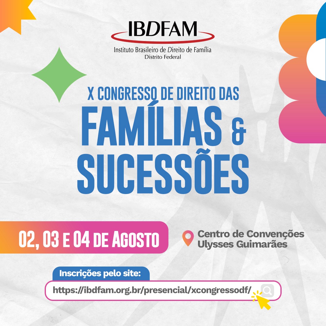 Inscrições: https://ibdfam.org.br/presencial/xcongressodf/