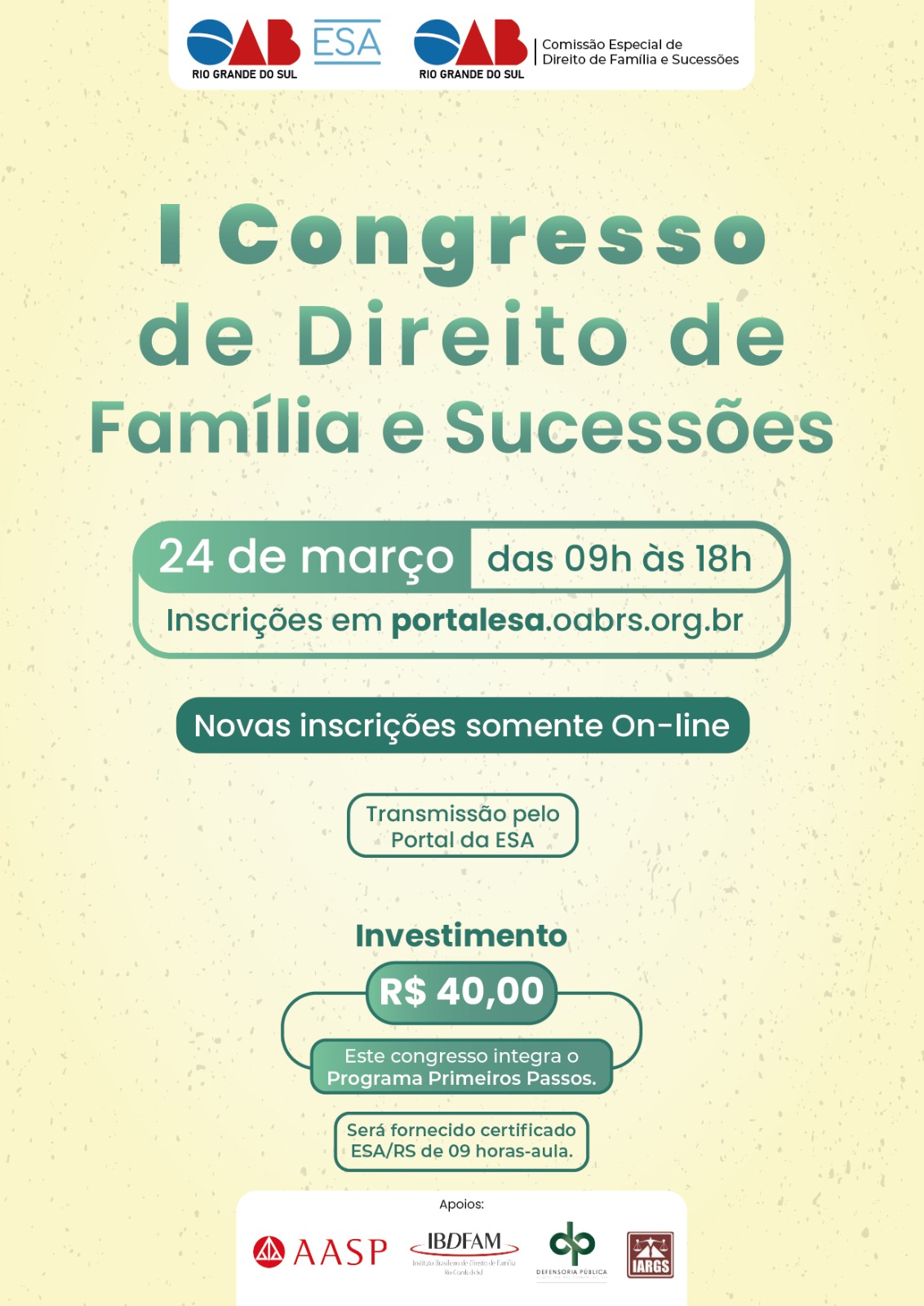 Inscrições: https://portalesa.oabrs.org.br/