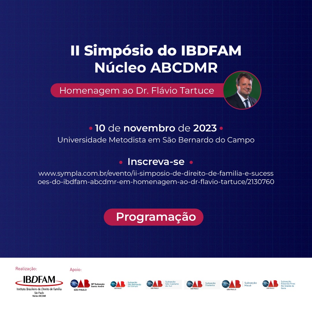 O evento, que nesta edição homenageia o professor Flávio Tartuce, acontece em 10 de novembro, na Universidade Metodista, em São Bernardo do Campo.