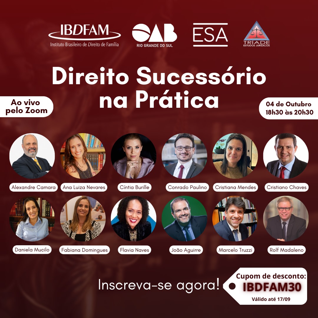 Inscrições: https://curt.link/IBDFAM-CURSO-DE-ATUALIZAÇÃO-DIREITO-SUCESSÓRIO-NA-PRÁTICA