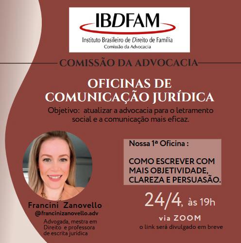 O encontro on-line, promovido pela Comissão de Advocacia do IBDFAM, será às 19h, via Zoom.