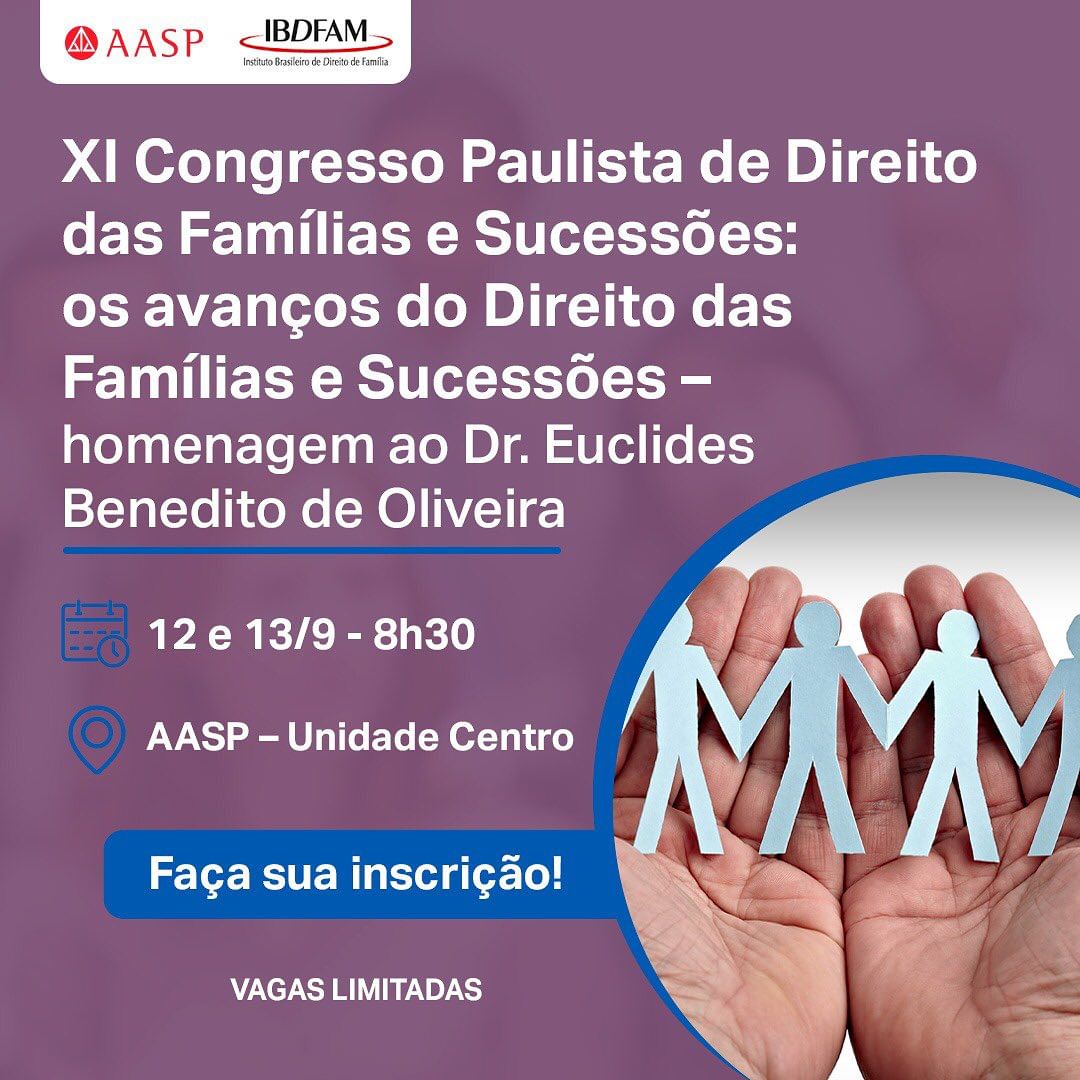 Para realizar sua inscrição, cadastre-se no site da AASP, faça o login e selecione a opção "Associado IBDFAM".