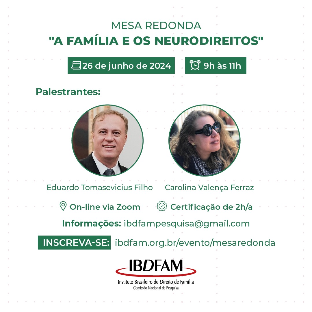 Inscrições: https://ibdfam.org.br/evento/mesaredonda/