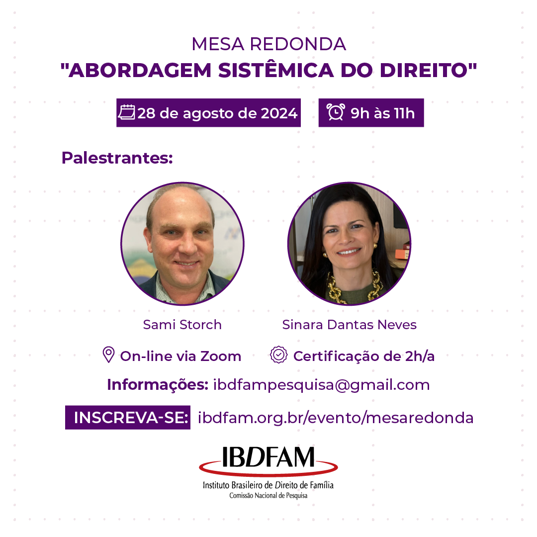 Inscrições: https://ibdfam.org.br/evento/mesaredonda/