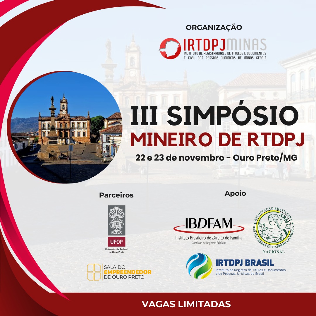 Inscrições: https://www.sympla.com.br/evento/iii-simposio-mineiro-de-rtdpj/2638881