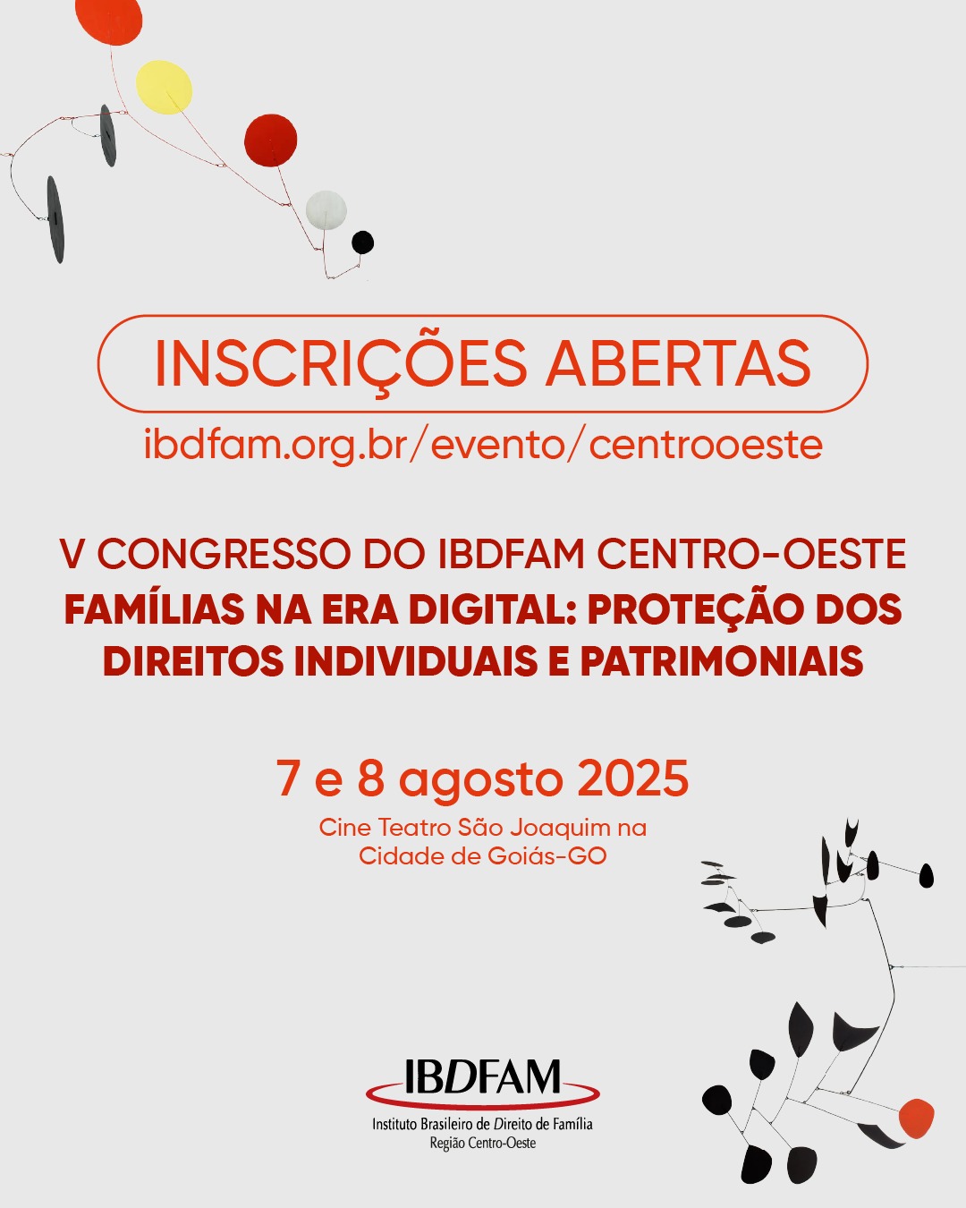 O evento promovido pela Diretoria Centro-Oeste do IBDFAM acontece nos dias 7 e 8 de agosto de 2025, no Cine Teatro São Joaquim, na cidade de Goiás (GO).