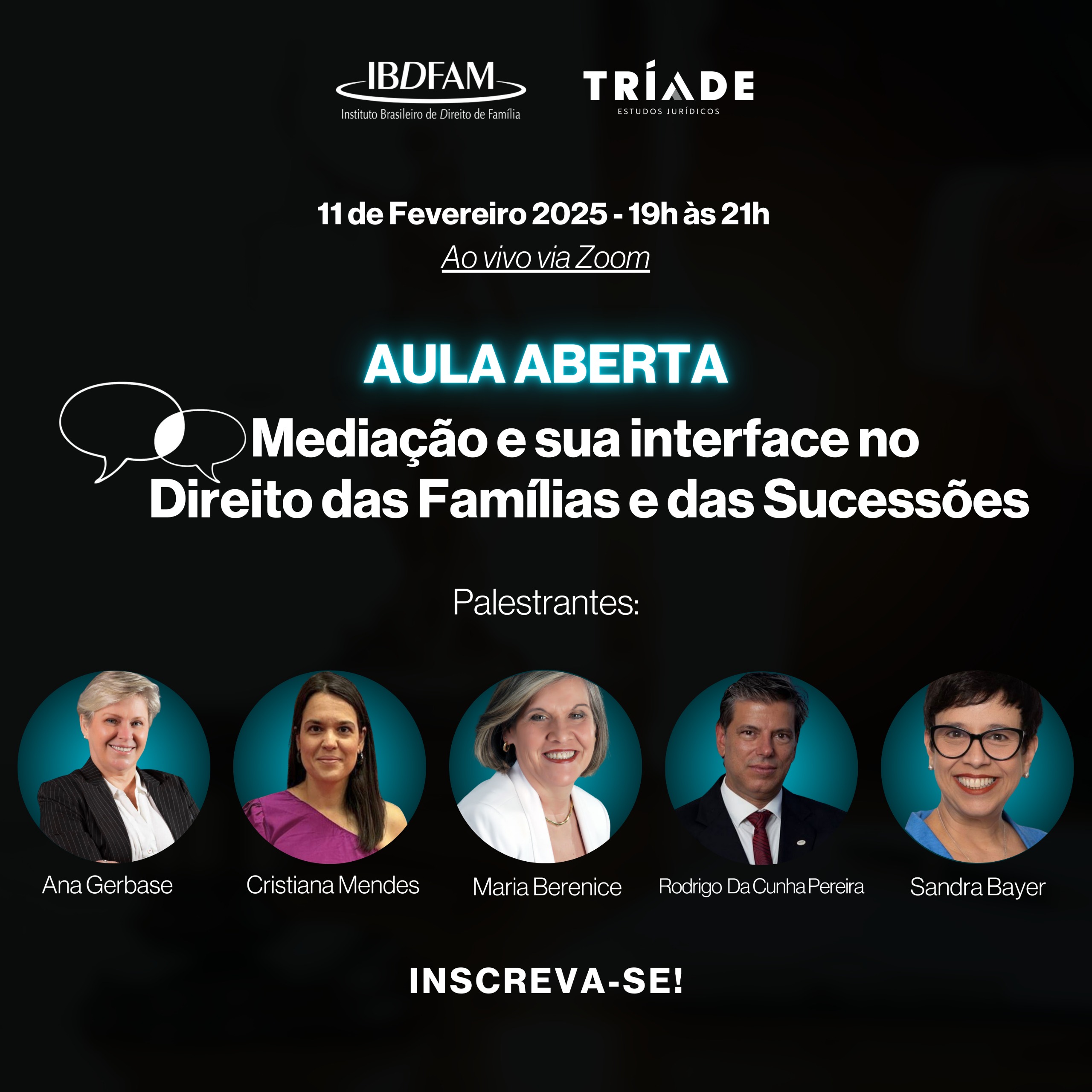 Inscrições: http://cursotriade.com.br/aula-aberta-mediacao-e-sua-interface-no-direito-das-familias-e-das-sucessoes/2033