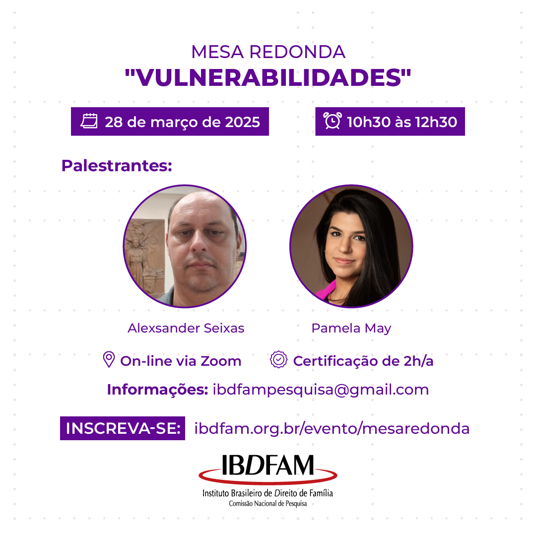 Inscrições: https://ibdfam.org.br/evento/mesaredonda/