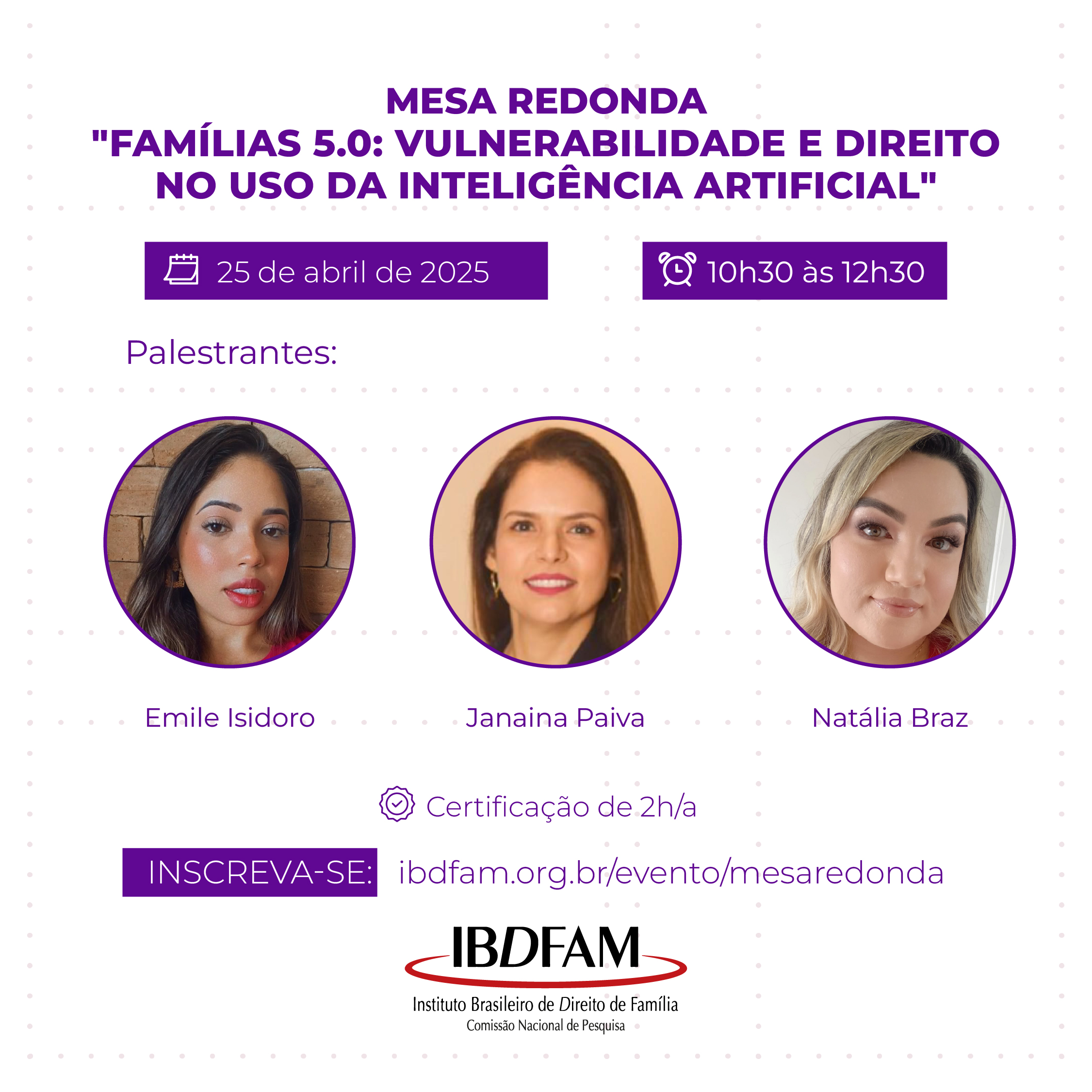 Inscrições: https://ibdfam.org.br/evento/mesaredonda/