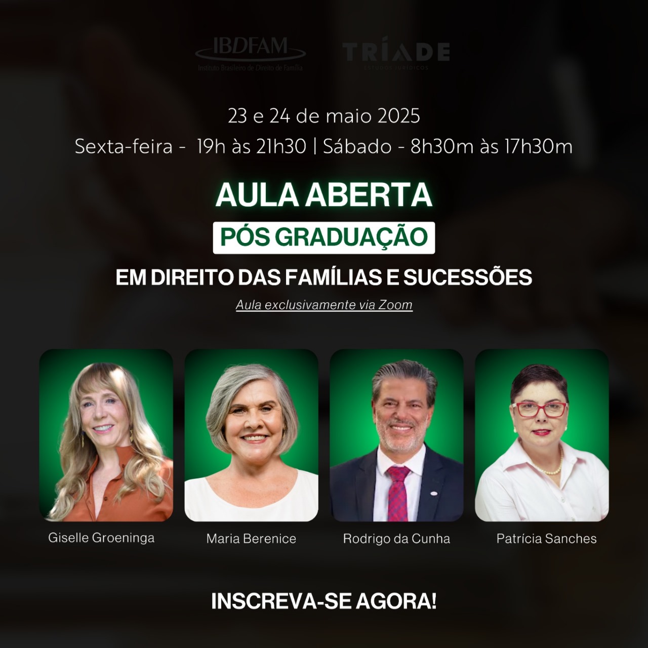 Inscrições: https://curt.link/IBDFAM-AulaAberta:PósGraduacao-SP