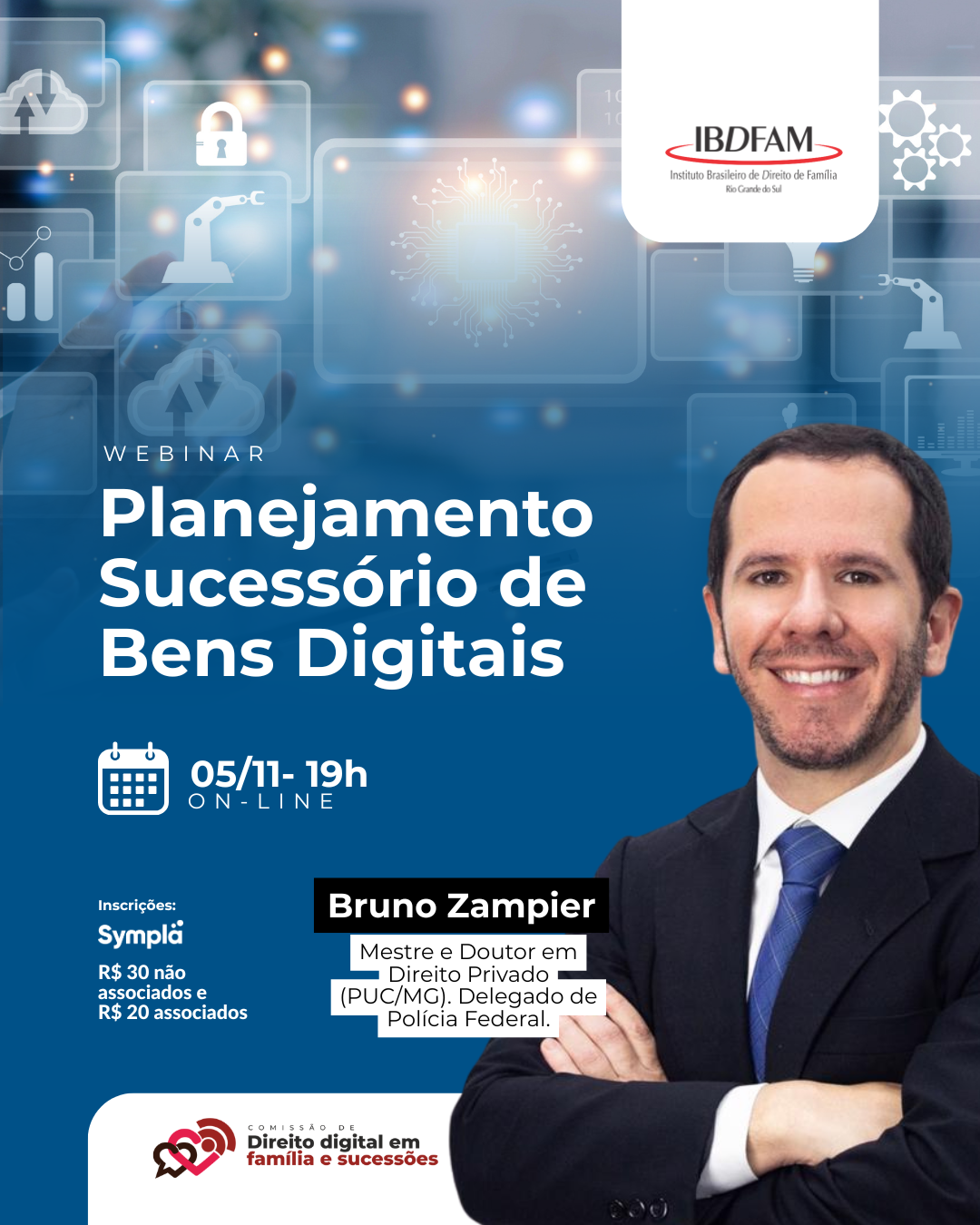 Inscrições: https://www.sympla.com.br/evento-online/webinar-planejamento-sucessorio-de-bens-digitais/3165281