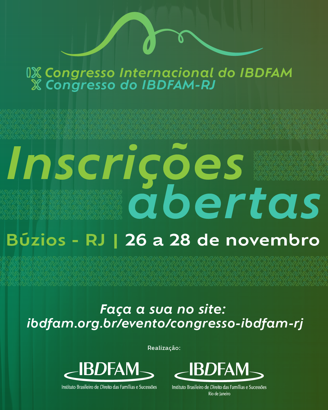 Inscrições: https://ibdfam.org.br/evento/congresso-ibdfam-rj/