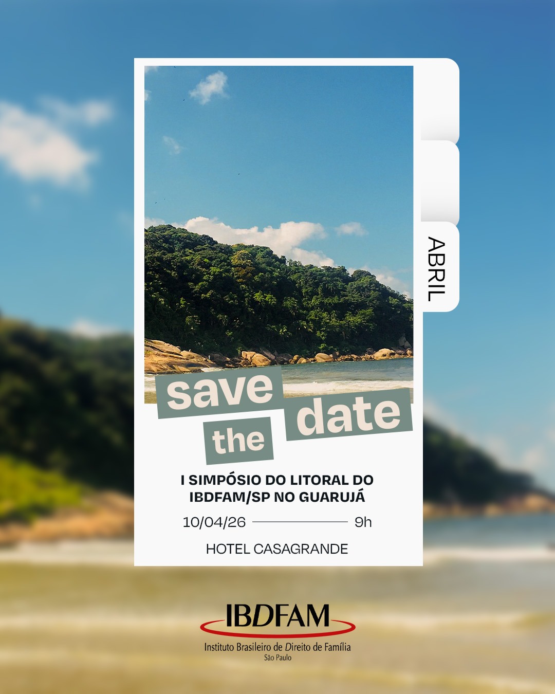 O evento, promovido pelo IBDFAM-SP, acontece no dia 10 de abril, no Hotel Casa Grande, no Guarujá, litoral de São Paulo.
