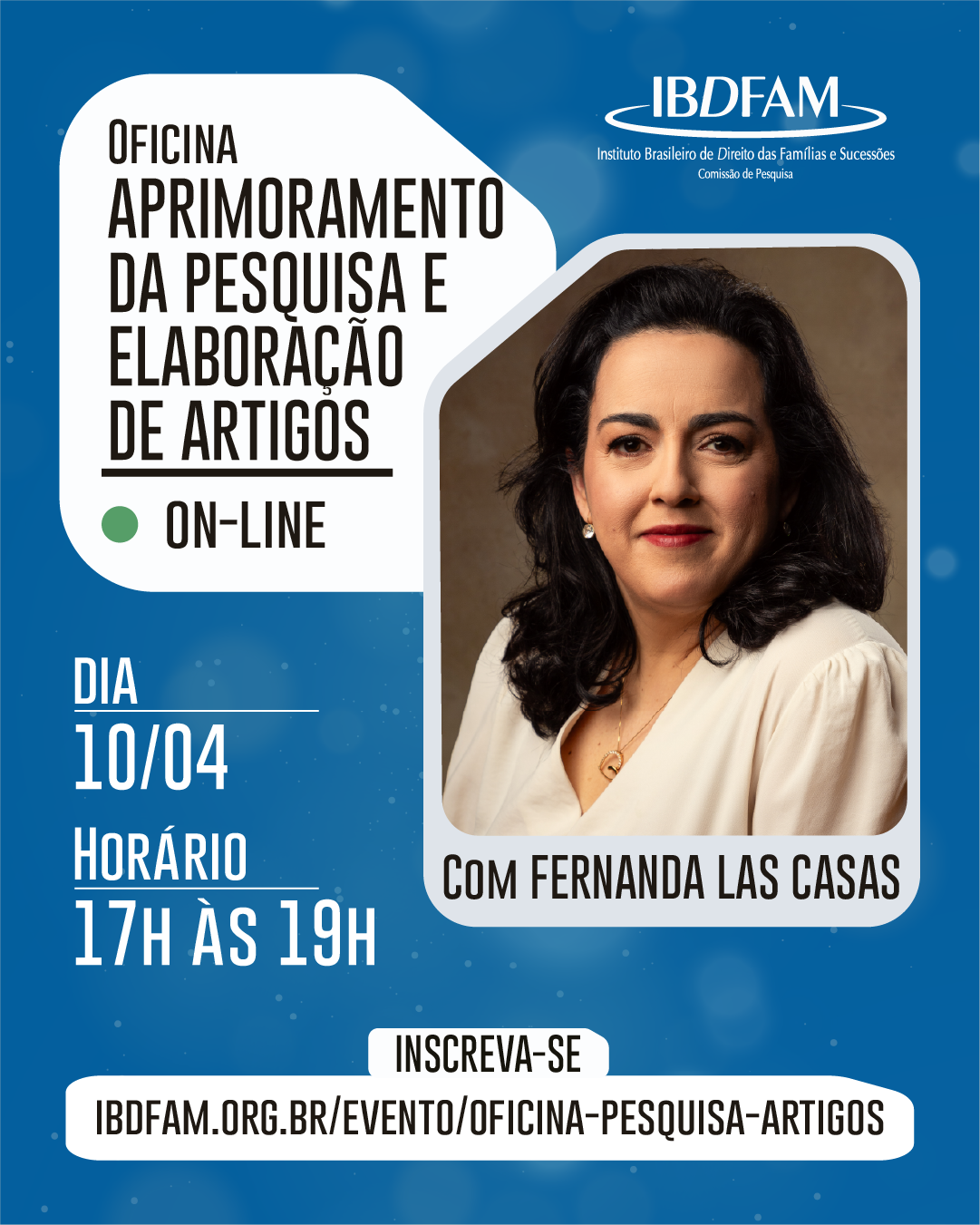 Inscrições: https://ibdfam.org.br/evento/oficina-pesquisa-artigos/