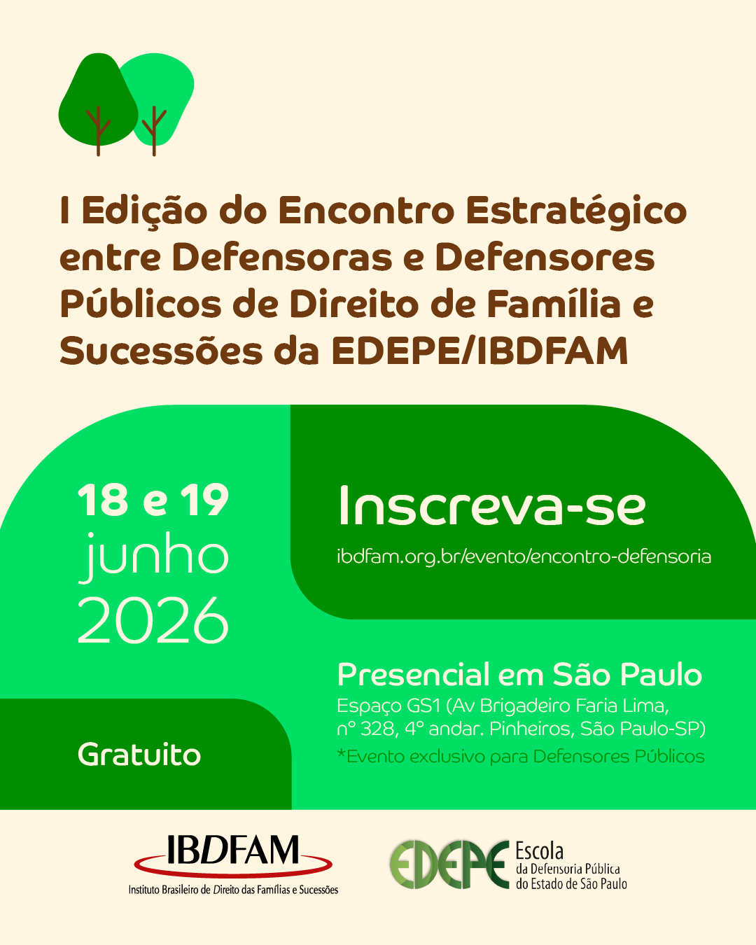 Inscrições: https://ibdfam.org.br/evento/encontro-defensoria/