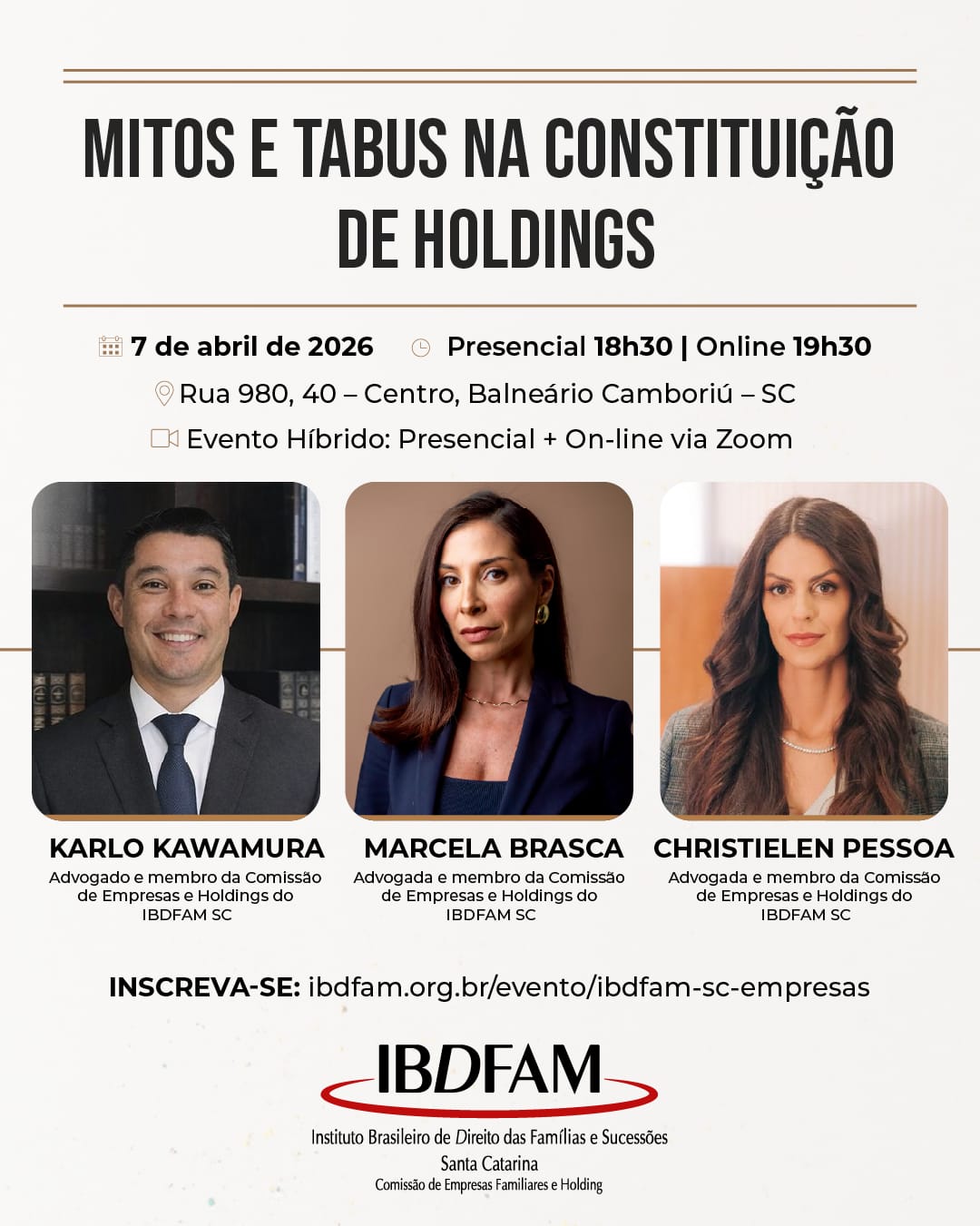 Inscrições: https://ibdfam.org.br/evento/ibdfam-sc-empresas/