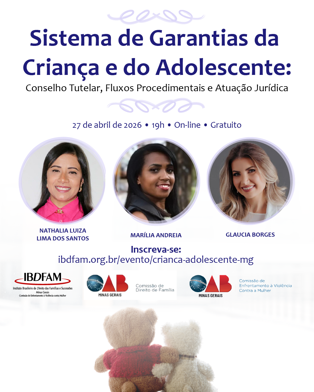 Inscrições: https://ibdfam.org.br/evento/crianca-adolescente-mg/
