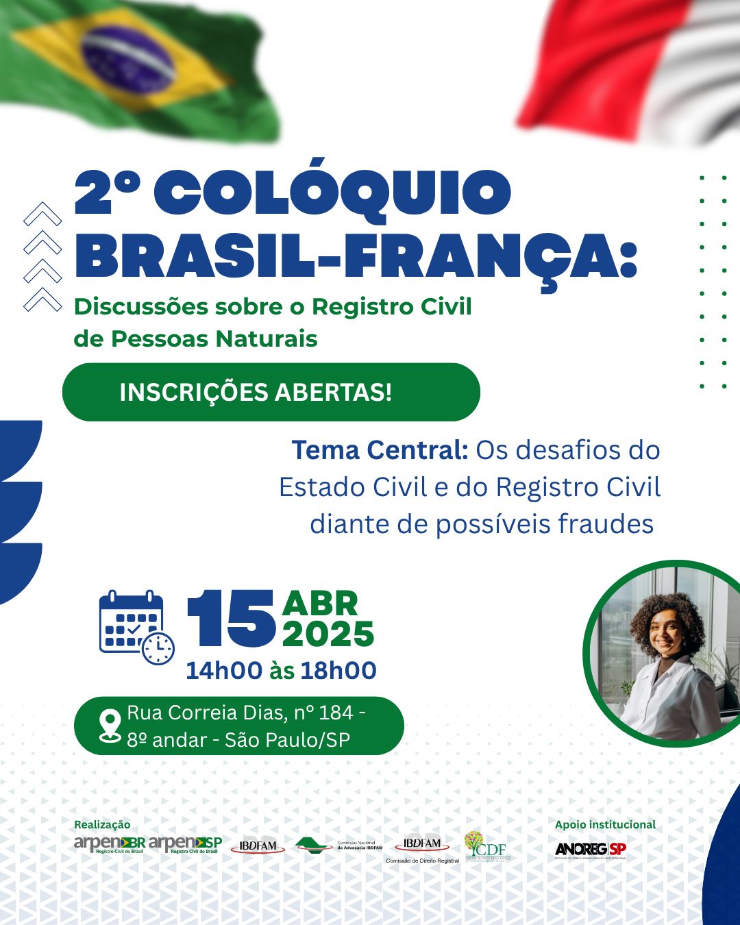 Realização: Arpen/SP, Arpen-Brasil, Faculdade de Direito da USP, Comissão de Advocacia do IBDFAM Nacional, IBDFAM-SP e Centre de Droit de La Famille - Universite Jean Moulin Lyon 3.