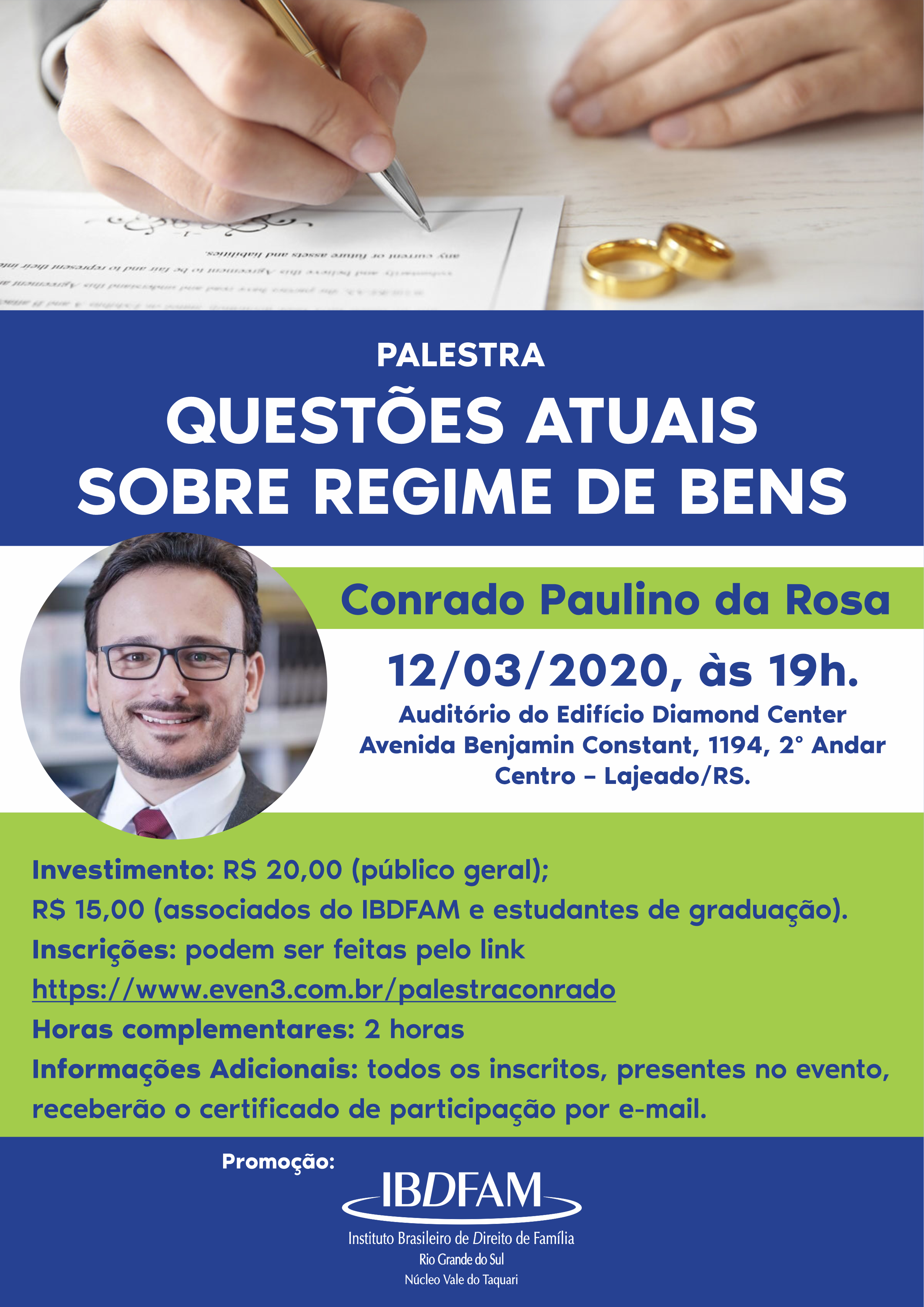 Evento será ministrado pelo advogado Conrado Paulino da Rosa.