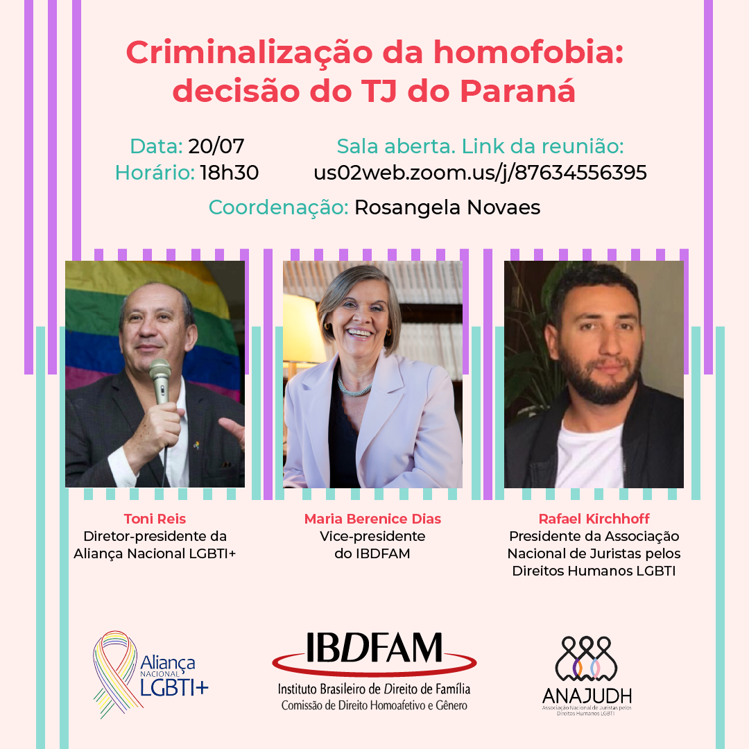 Evento que será realizado por meio da plataforma Zoom contará com as participações de Toni Reis, Maria Berenice Dias e Rafael Kirchhoff.