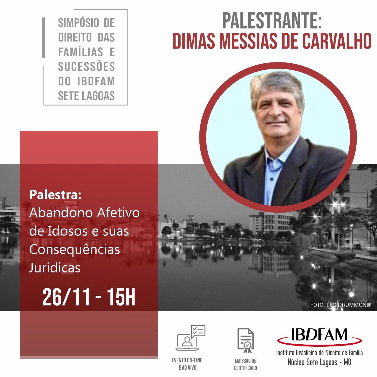 O professor e promotor de Justiça Dimas Messias de Carvalho, diretor nacional do Instituto Brasileiro de Direito de Família – IBDFAM, aborda as consequências jurídicas do abandono afetivo de idosos em palestra no Simpósio de Direito das Famílias e Sucessões do IBDFAM Sete Lagoas.